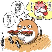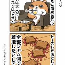 昨日投稿した、「よりによって、ジャム側でトーストを落とした」って悲劇が起きる前の場面です。●質問があったので回答します!【Q1】なぜ4枚もトーストがあるの?【A1】これはキョムスターという、いつも虚無ってるキャラクターの創作で…彼にはヤムスターというパートナー ...