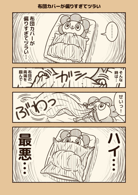 布団カバーが偏りすぎてツラい 2021年10月09日 19:49 一生このまま直らない気がしてくる…。気になって寝れない…。 「ざんねんあるある」カテゴリの最新記事 タグ :#あるある#漫画#日常#創作 < 前の記事次の記事 > コメント コメントフォーム 名前 コメント 記事の評価 リセット リセット 顔 星 情報を記憶 コメントを投稿する