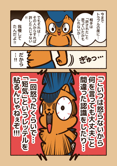 積み重なった不満に気づいていない人に物申す 2024年10月13日 18:04 普段は怒らない人が、我慢ができずに怒ってしまった時…「突然キレた」とか言われる事があるけど、その多くは「突然」ではない。突然キレたのではなく、それまでその人が我慢してきた、たくさんの不満の積み重ねだったりする。●本が発売しました!『一人反省会をして、いつも落ち込んでしまう人へ』 「アニワル」カテゴリの最新記事 タグ :#アニワル#漫画 < 前の記事次の記事 > コメント コメントフォーム 名前 コメント 記事の評価 リセット リセット 顔 星 情報を記憶 コメントを投稿する