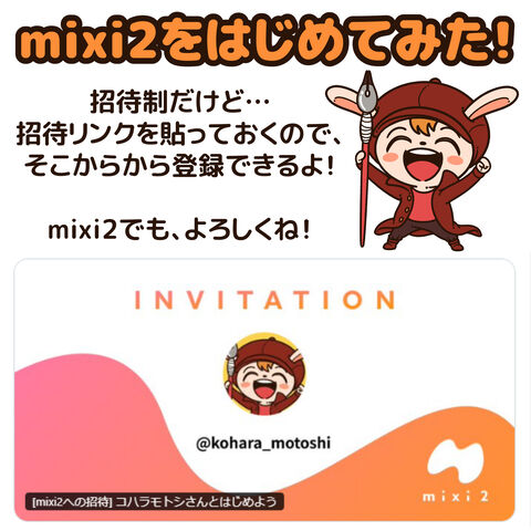 mixi2をはじめてみた! 2024年12月16日 17:13 新しいSNSの「mixi2」をはじめてみた!招待制だけど、このリンクから登録できるよ!mixi2でも、よろしくね! なんでもやってみないとわかんないし、SNSは流行り廃りが激しく、頻繁にルールチェンジが起きるので、今後のために早めに準備しておくことにした。(現状でも色々な場で投稿しているから、これ以上増えると大変なんだけどね。) 「お知らせ」カテゴリの最新記事 タグ :#お知らせ < 前の記事次の記事 > コメント コメントフォーム 名前 コメント 記事の評価 リセット リセット 顔 星 情報を記憶 コメントを投稿する