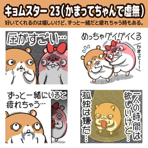 “キョムスター”の新作LINEスタンプが出た! 2025年12月03日 16:23 “キョムスター”の新作LINEスタンプが出た!いつも虚無ってるハムスター。好いてくれるのは嬉しいけど、ずっと一緒だと疲れちゃう時もある。 「お知らせ」カテゴリの最新記事 < 前の記事次の記事 > コメント コメントフォーム 名前 コメント 記事の評価 リセット リセット 顔 星 情報を記憶 コメントを投稿する